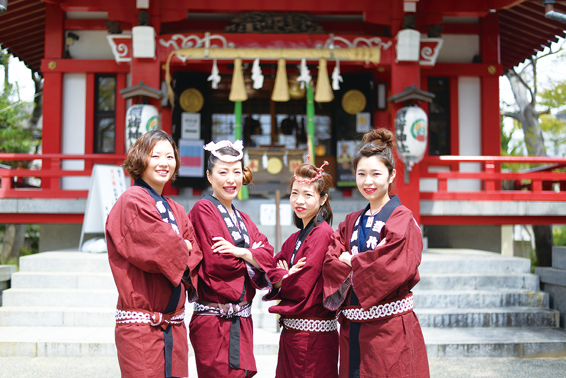 浦安生まれ・浦安育ち。「記憶があるのは小学生の時から。」「私は幼稚園かも!」と、物心ついたときから三社祭りに参加している彼女達に「今までで一番楽しかったことは?」と聞くと、揃って返ってきた答えが「毎回楽しい!」。弾けるような笑顔とキリッとした半被姿がキラキラしていて、若い世代の勢いと迫力を感じます。