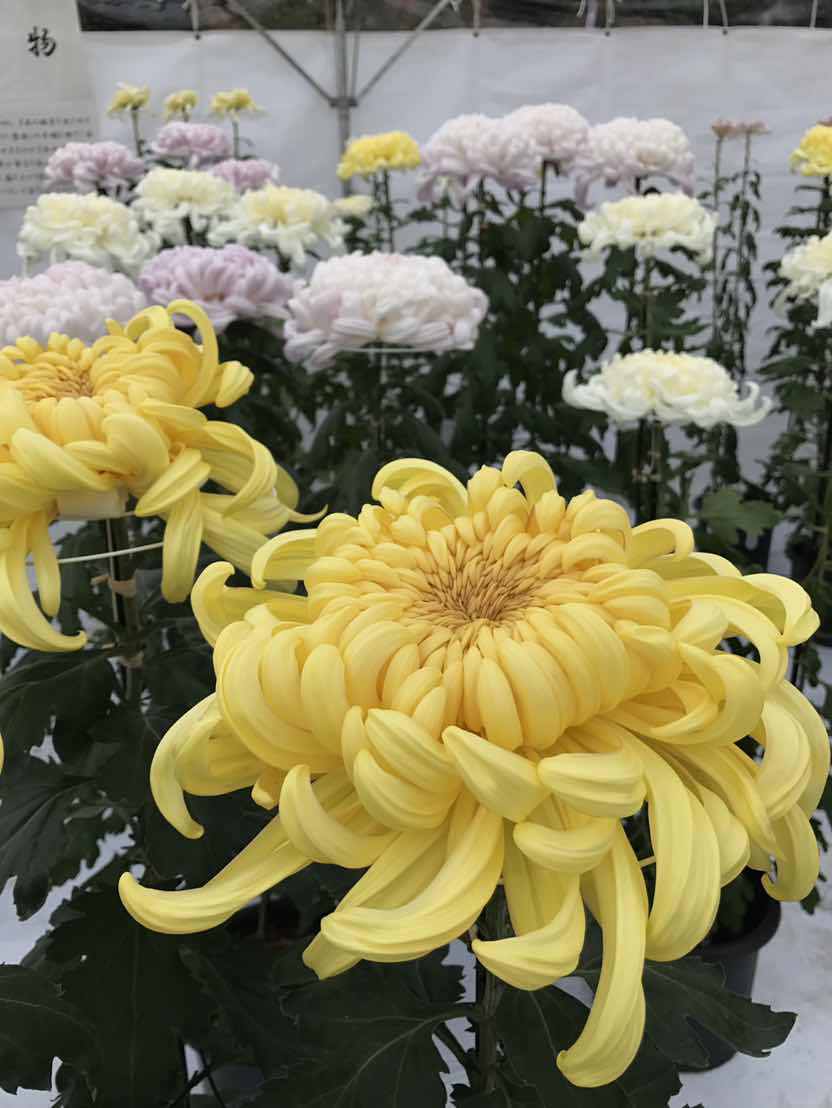 猫実にある中央図書館横のゲートボール場で開催されており、浦安菊好会会員の方の作品が展示されています。