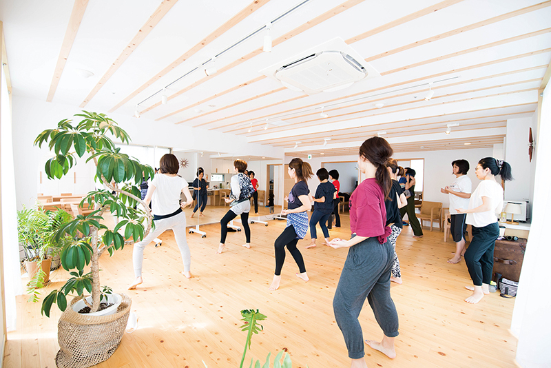 富士見の「銀木犀」一階にある、広くて明るくて木の温もり感じるオシャレなスペースが「MAMA DANCE」の会場。幼稚園や学校に通っている間に…と自由な時間を活用するママのほか、この日は小さなお子様を連れて、一緒にレッスンを受けるママの姿も見られました。まずは丁寧なストレッチからスタート。抱っこやおんぶでガチガチになった肩をほぐし、日々の子育てでいつの間にか硬くなった身体をやわらか~く伸ばしていきます。十分な柔軟を終えたらいよいよダンスレッスン! 腰を入れた振りや本格的なステップに皆さんの額には汗が…。でもその表情は笑顔にあふれていて、とっても楽しそう! 「気持ち良かった!」レッスン終了後のママたちの、すっきりとした表情が印象的でした。