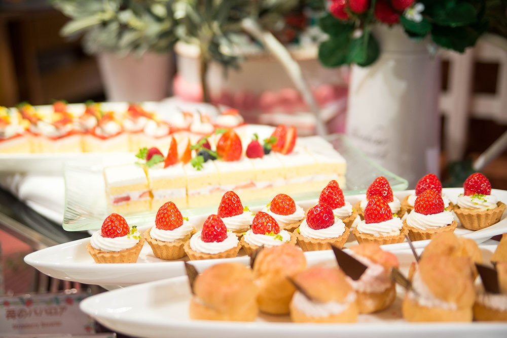 かわいすぎて、まずは写真を…とスマホ片手にスイーツコーナーを訪れる方も多くいらっしゃいました。 いちごスイーツの種類はなんと10種類!その他のフルーツ等も入れると、スイーツは全部で18種類とバリエーションも豊富。1つ1つ毎日手作りされているそうで、丁寧に作られているなぁとかわいいスイーツ達をじっくり見てしまいます。ちょうど良い甘さと小ぶりなサイズで、色んな種類を思いっきり楽しめるのも嬉しい点です。