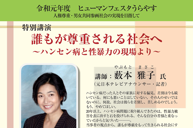 【1/18開催】ヒューマンフェスタうらやす講演会『元日本テレビアナウンサーが語る、「誰もが尊重される社会へ~ハンセン病と性暴力の現場より~」』が開催されます