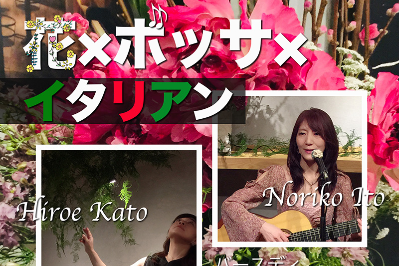 最近なんだか世の中がざわついていて、普段通りにしようとは思うものの変に緊張していたり、疲れていたりしませんか。そんな時はキレイなものを見て、心地よい音楽を聴いて、美味しいものを食べるに限ります!…と、来る2月23日(日)に、そのすべてを満たしてくれるステキなイベントが開催されるというではありませんか!! 北栄の人気イタリアン『DecoBocco』さんで開催される『花×ボッサ×イタリアン』は、花生けライブとボサノヴァの歌、そしてDecoBoccoさんの美味しいお料理が店内を彩る、とってもステキな昼下がりを過ごせるイベントなんです。ぜひ、予定を空けておいてくださいね!