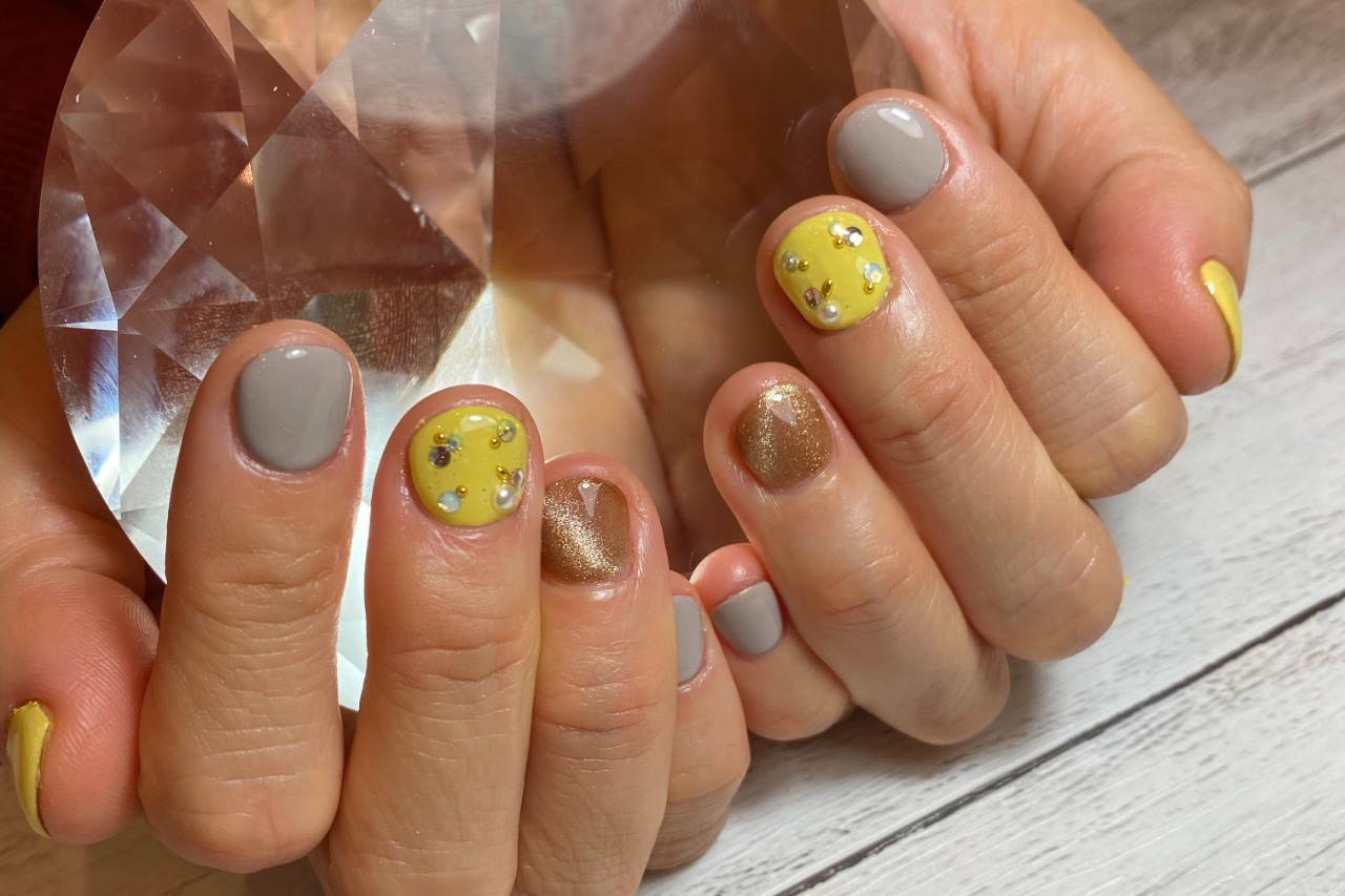 新しく出来たサロンって気になる…!行ってみたい! そんな新規のお客様の声にお答えして、初回のお客様限定でお試しジェルネイル(ハンド)が5,000円で受けられるキャンペーン実施中♪ 全10種類のデザインの中から好きなものを選びます。ストーンやグラデーションなど、5,000円とは思えない華やかなデザインばかり!これは迷いますね…。
