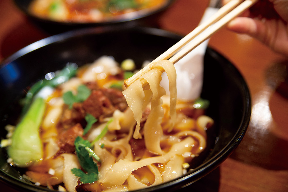 ピリッと辛い牛肉が載った『牛肉刀削麺』(880 円)やパクチーがアクセントに辛さがやみつき『坦々刀削麵』(880 円)が人気。鉄板に餡がかかる絵は最高ですね!看板メニューの『鉄板フカヒレ丼』(980 円)。赤唐辛子の辛さがくせになる、ご飯がどんどん進む『鶏肉の醤油煮込み丼』(980 円)。(※全て税抜き価格)