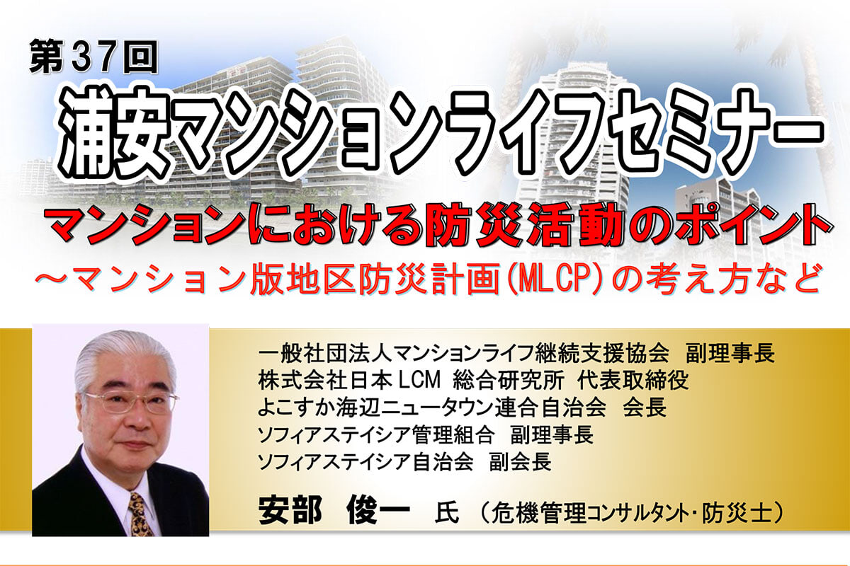 第37回『浦安マンションライフセミナー』が10月30日(土)に開催。 「マンションにおける防災活動のポイント」@美浜公民館