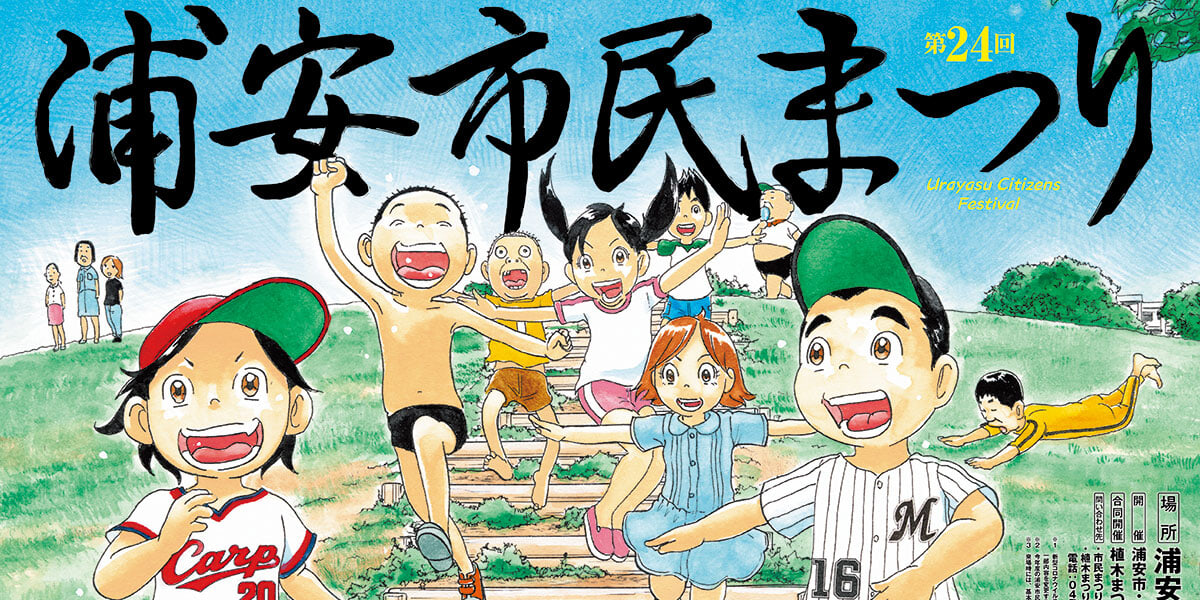 また、浦安市民まつりホームページでは、昨年TV実写化で市内の話題をかっさらった浦安鉄筋家族の原作者、浜岡 賢次さんが描いた『市民まつり』のための書下ろしイラストポスターをご覧いただけます! ホームページには歴代のポスターもあり。ぜひともホームページをご覧ください!