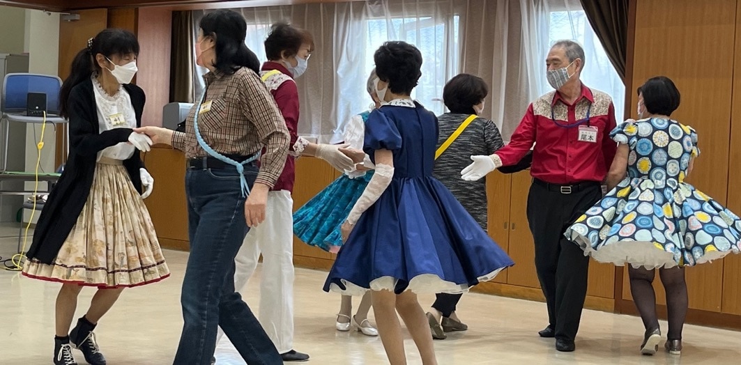 スクエアダンスはご夫婦だけでなく、親子、お孫さんと参加する方も少なくないのだとか。激しい動きや身体訓練は不要ですが、頭をつかう「脳トレ的」な要素もあり、幅広い年代で楽しめるのも魅力のひとつ。