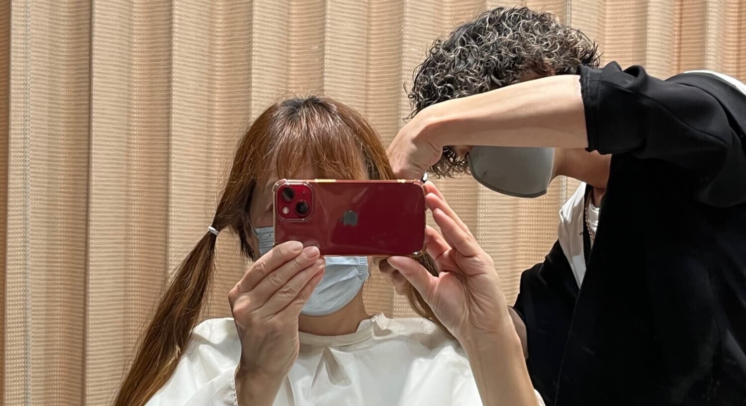 まずは、スタイリストのテクニックで髪の毛を真っ直ぐな状態にしていただきます。
