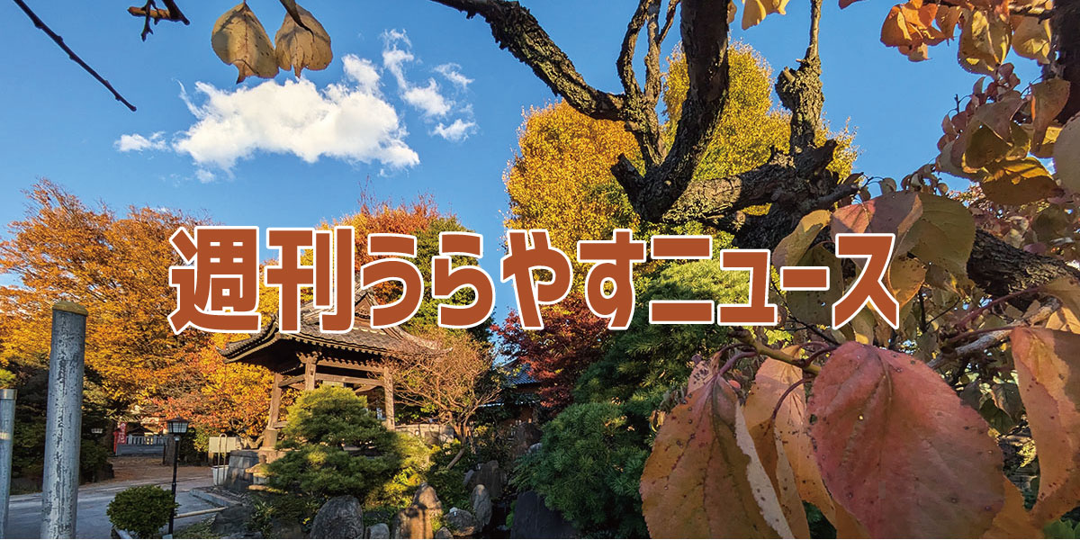 朝晩は冷たい風が吹きますが、昼間は温かいぽかぽかな陽気が続いていますね。市内のイチョウなどの紅葉が見事に咲いています。鮮やかな色味は元気も出て癒されますね、市内各所で楽しめるので紅葉散歩を楽しんでみては? それでは今週の「うらやすニュース」をどうぞ!