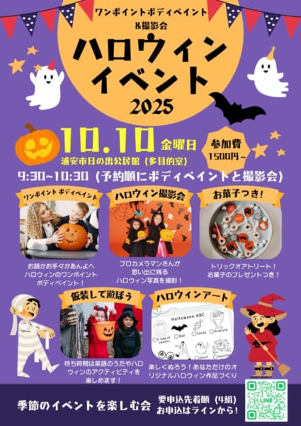 『ハロウィンイベント参加希望撮影希望のお時間・大人◯名・子供◯名』(保護者様とお子様ご一緒のお申込みをお願い致します) をラインへメッセージにお書きください。お申込みはコチラから