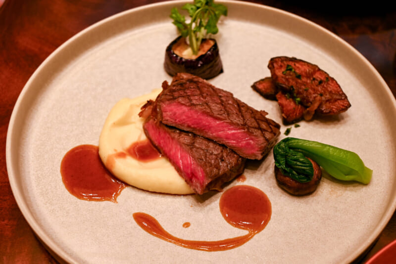 レアに焼かれたお肉はプルプルでとっても柔らかく、ひと口食べればジューシーな肉汁が口いっぱいに広がり、幸せな気分に。そのままでももちろん美味しいですが、特製バーベキューソースを合わせると、また違った深みのある味わいが楽しめます。