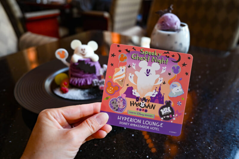 続いてご紹介するのは、ロビーラウンジ「ハイピリオン・ラウンジ」で楽しめる「”ディズニー・ハロウィーン”ケーキセット」です。もう、見た瞬間に「かわいい!」と声が出ちゃうほどのビジュアル!