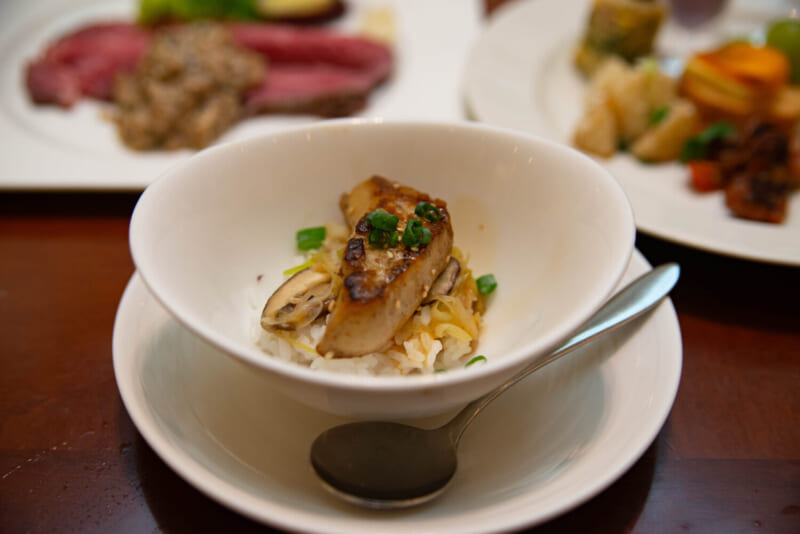 ホテル開業当初から受け継がれる“ブライトンスタイル”のフォアグラ丼は、香ばしくソテーしたフォアグラをご飯の上に贅沢にのせ、にんにく入りの和風たれで仕上げた伝統の一品。濃厚な旨みが口いっぱいに広がる幸福感です♡
