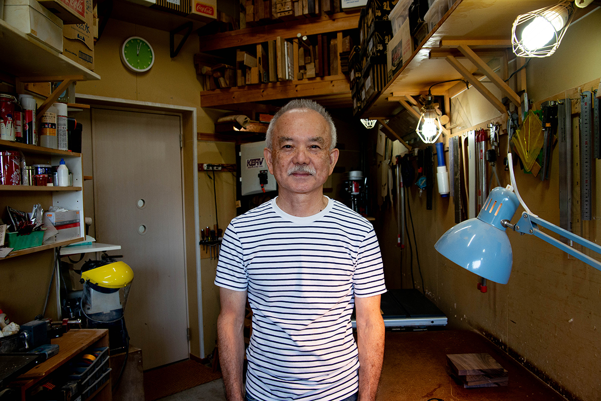 工房を営むのは、浦安在住の木工作家・横山和男さん。30年サラリーマンとして働いてきましたが、自宅のリフォームをきっかけに木工の世界へ。大工だった父親の背中を思い出し「久しぶりに木を触った瞬間、血が騒いだ気がした」と笑い、夢中で木を削るうちに「もっといいものを作りたい」という思いが膨らんでいったと言います。40代で飛騨高山の工芸学園に通い、本格的に木工を学び始め作品作りに没頭していきます。