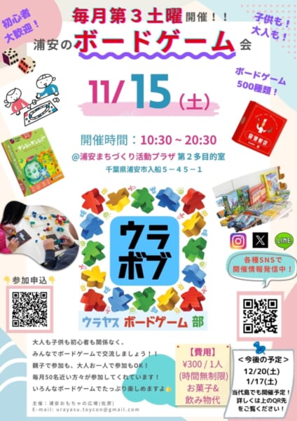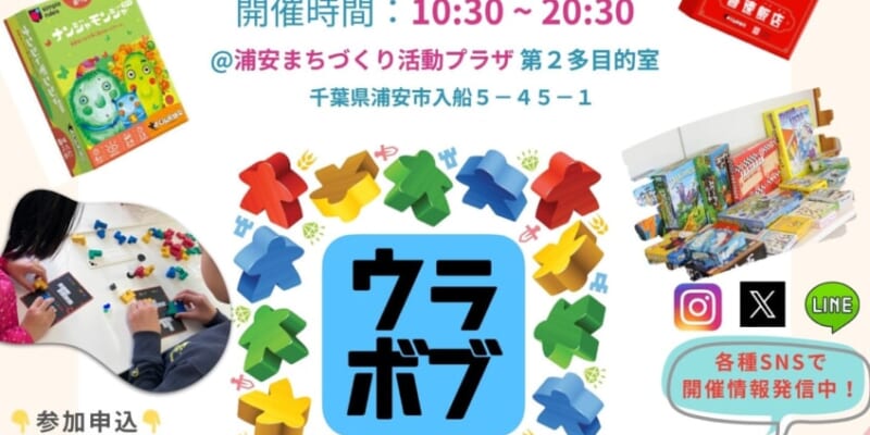 浦安/入船にて毎月第3土曜に開催している、ボードゲーム会! 次回は、11月15日(土)10:30-20:30 で開催!