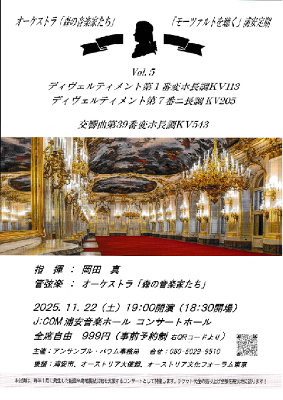 【無料ご招待あり!】11月22日(土)「オーケストラ 森の音楽家たち 〜モーツァルトを聴く」浦安定期Vol.5