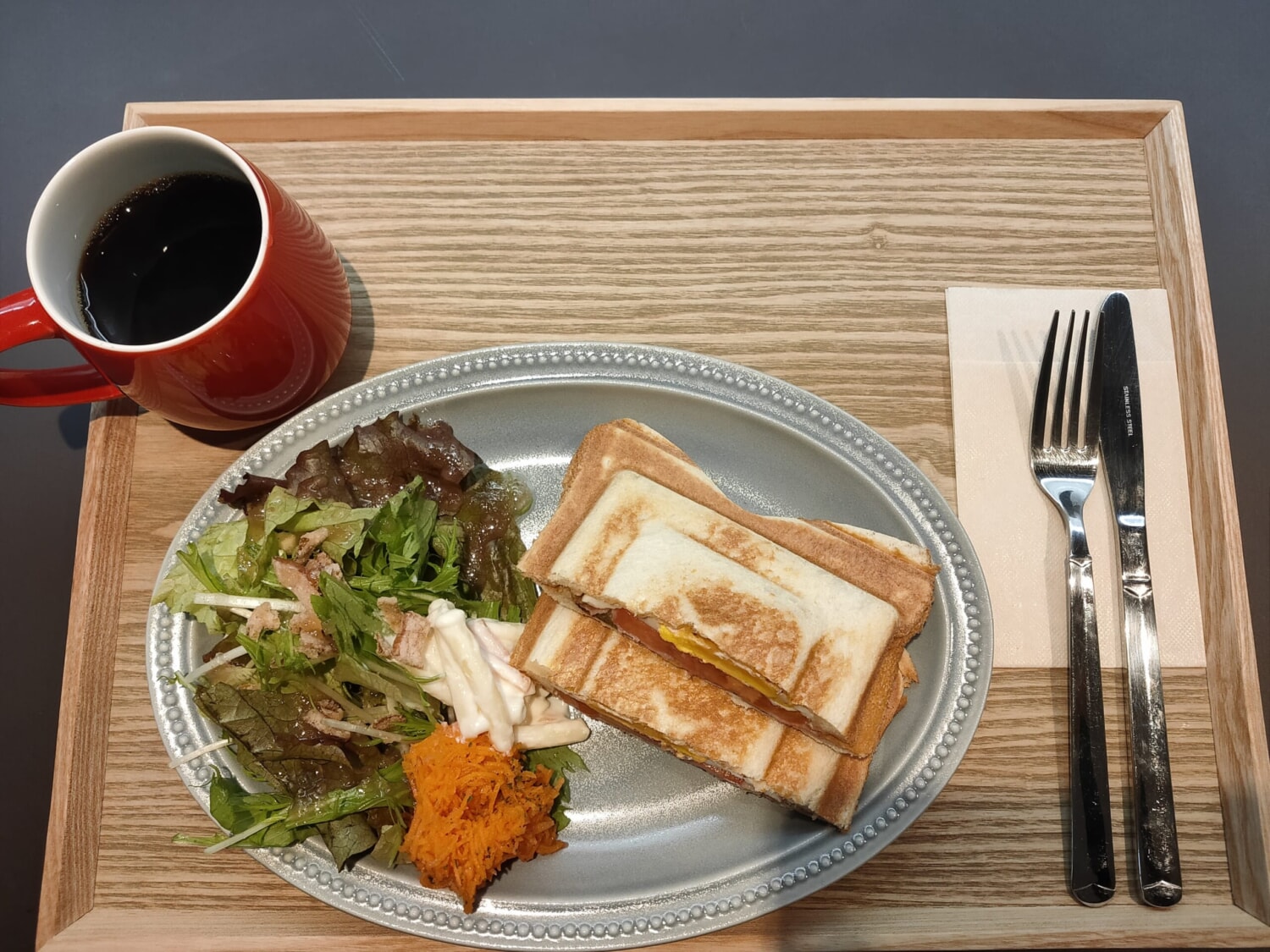 人気の「BLTホットサンド」と、こだわりのハンドドリップコーヒーを注文しました。