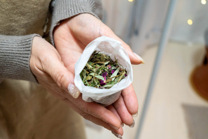 「『Ohagi』の特徴は、国産無農薬のよもぎをベースに、モリンガ、和ハーブ、高級ローズまで 14種をブレンドした贅沢スチーム。「国産無農薬」や「和ハーブ」は他店にはなかなか無く、日本人に合う貴重なブレンドなんです」とスタッフさん。