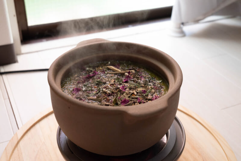 「無農薬ハーブ14種の贅沢ブレンド」と「黄土の座浴器」のよもぎ蒸しは、日本人にとって最高のコンビネーション!