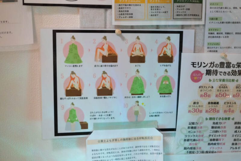 温度は内部で約45〜50度、お風呂より少し熱いくらいのようですが、慣れるまで結構熱いかも!最初のうちは少し前に出てみてとスタッフさんが教えてくれて、そうすると、お尻から背中~全体がじわりじわりと温まっていってとっても良い感じ!