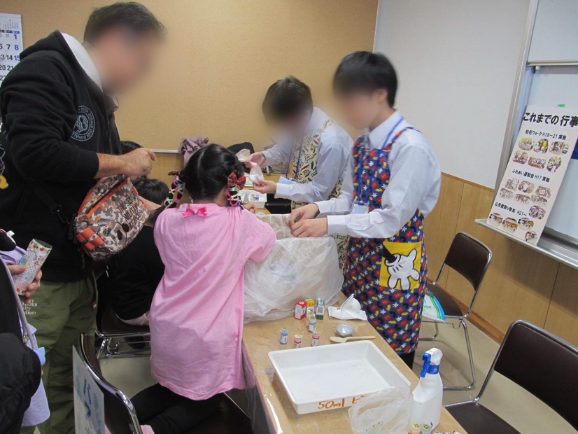 10時から14時までに科学工作に訪れたのは、なんと127人! 健育構成員含めてのスタッフ19人が協力し合い、大盛況でした。