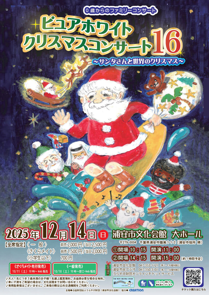 12/14(日)開催!『ピュアホワイトクリスマスコンサート16』0歳から参加OKのファミリーコンサート@浦安市文化会館