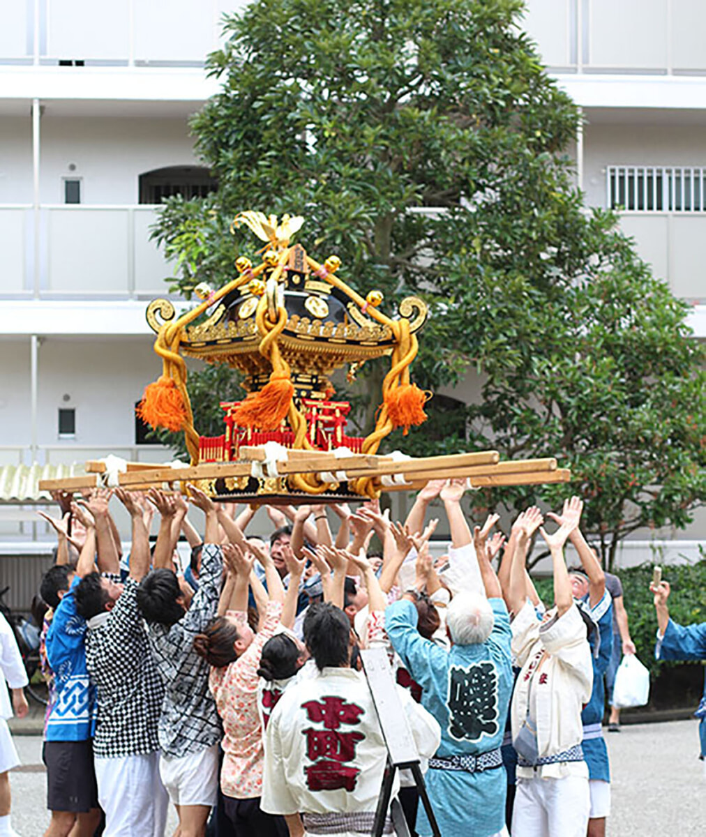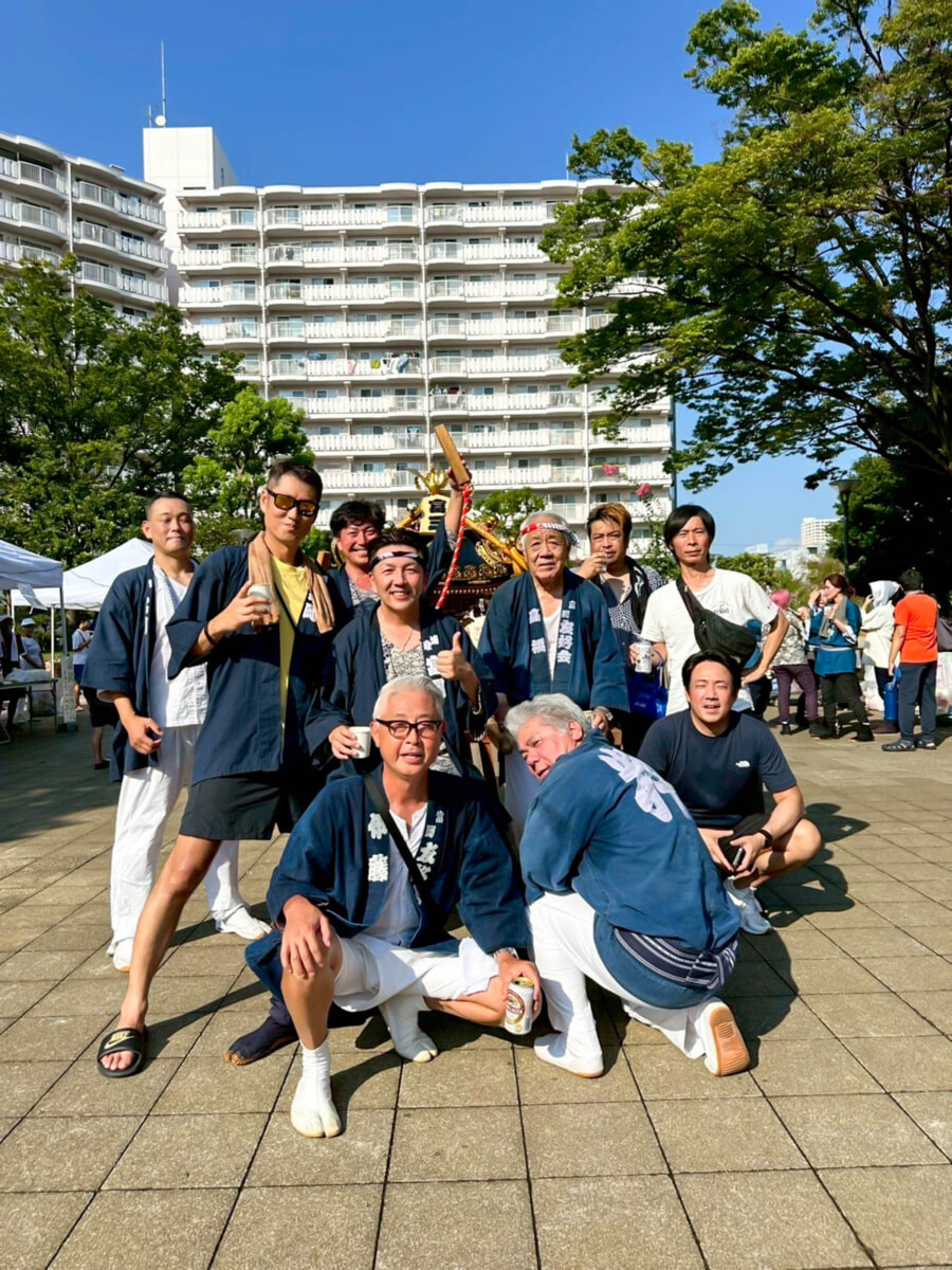 「富岡の夏」といえば「お祭り」!聞けば、もともとは富岡に引っ越してきた人たちが「盆踊りをやろう」と始めたのがきっかけだったそう。元町から移ってきた住民も多く、その気風がやがて「神輿をつくろう!」という大きな流れに。時間をかけて手づくりの御神輿も完成させたそうです(驚)! そしてなんと、「元町の祭で披露したい」という願いから、清瀧神社の氏子として、御神輿に御魂を入れる儀式である「宵宮」のみ参加を許されることに。そこで誕生したのが、富岡の「友好会」。「友好会」は現在、中町・新町エリアで唯一、三社祭の宵宮に参加できる神輿会となり、宵宮では他の先輩神輿会がすべて入場した後、一番最後に入場するのが習わしとなっているそうです。そして実は、富岡にはもうひとつ御神輿があるんです。それが、「サンコーポ浦安」の御神輿です。この御神輿は、今から約28年前、自治会創立20周年で購入されたそうですが、震災以降、すっかりしまわれたままになってしまい、その存在を知らなかったという人も多かったとか。そんな眠りについていた御神輿を再び呼び復活させたのが2017年の夏祭り。途絶えていた御神輿をもう一度!と地域の力が一つになり、御神輿は再び富岡の空へ舞い上がることができました。それまでなかなか交流のなかった一戸建てエリアとマンションエリアの人々も、この復活をきっかけに団結し、正に「御神輿」が、富岡の人をつなぐ架け橋になったそうです。