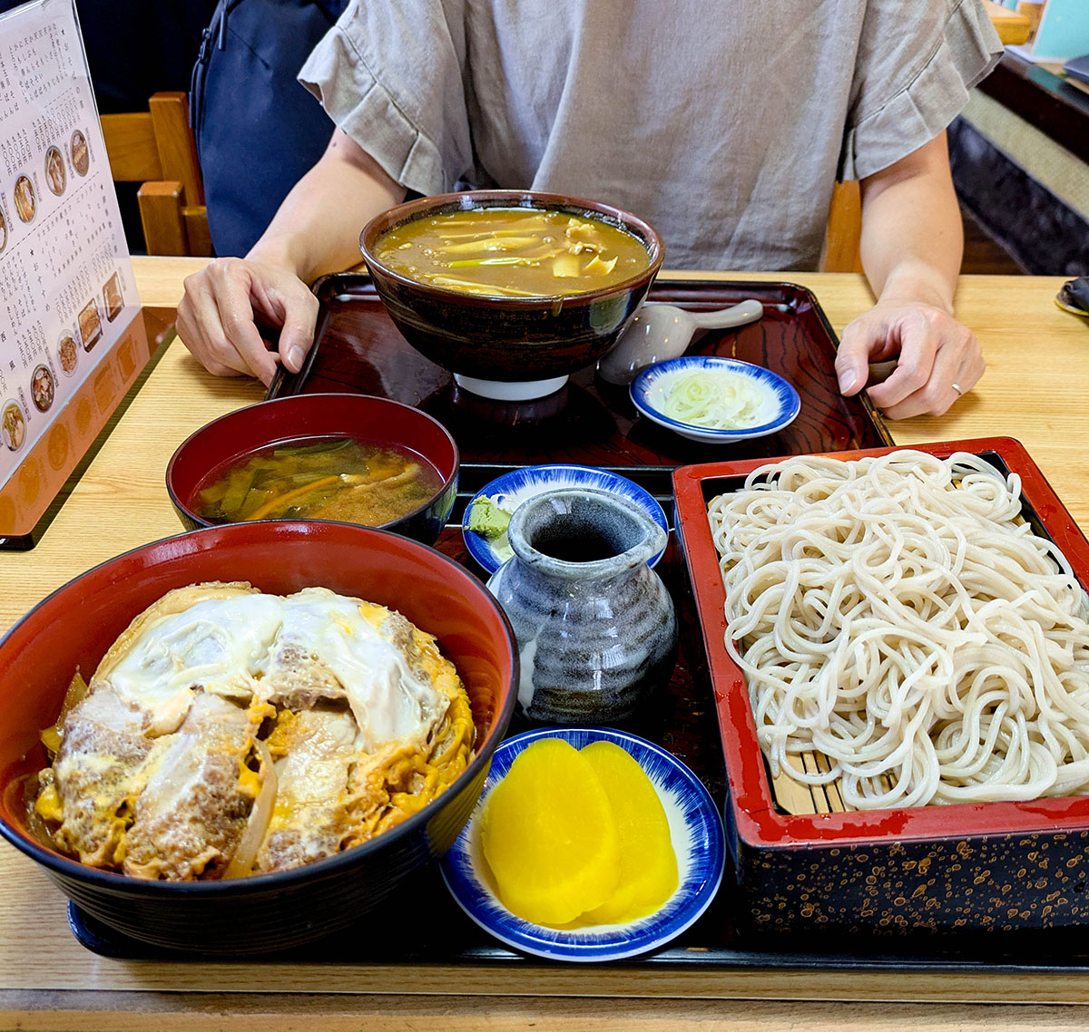 さて、富岡の「お腹のよりどころ」と言えば、やっぱりそば処「やぶ富」でしょう!1978年の創業以来ファンも多く、昼時になるとお店の外まで香ってくるおだしの良い香りに誘われ、ついつい入っちゃうお蕎麦屋さんです。「たくさん食べて、たくさん働いてもらえるようにね」と女将さんが言うように、ボリューム満点のメニューも!カツ丼にカルビ丼などのガッツリ系にお蕎麦がついたセットメニューも人気。昼からお蕎麦にビールを一杯、女将さんと楽しそうに話す常連さんの姿もまた、「富岡」のひとコマでしょう(笑)。