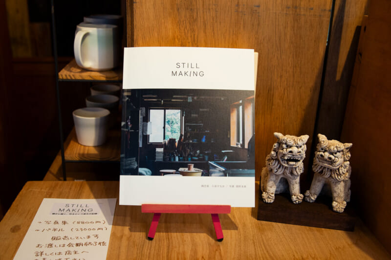柏市で陶芸活動を行う陶芸家・小泉すなおさんは、浦安と深い縁を持つ作家さんなんです。どんぐりさんでの展示をはじめ、堀江の正福寺では小学生を対象にした「てらこや」で〈陶芸道場〉を担当し、夏休みには沖縄シーサーのお面作りを通して、子どもたちに陶芸の楽しさ、文化を伝えています。市内での活動は多岐にわたります。また、今年の夏には、フォトグラファーの岡村未来さんが小泉すなおさんの作陶風景を撮影した、ある一日の記録の写真展「STILL MAKING」の展示、写真集販売なども、今年話題になりました。
