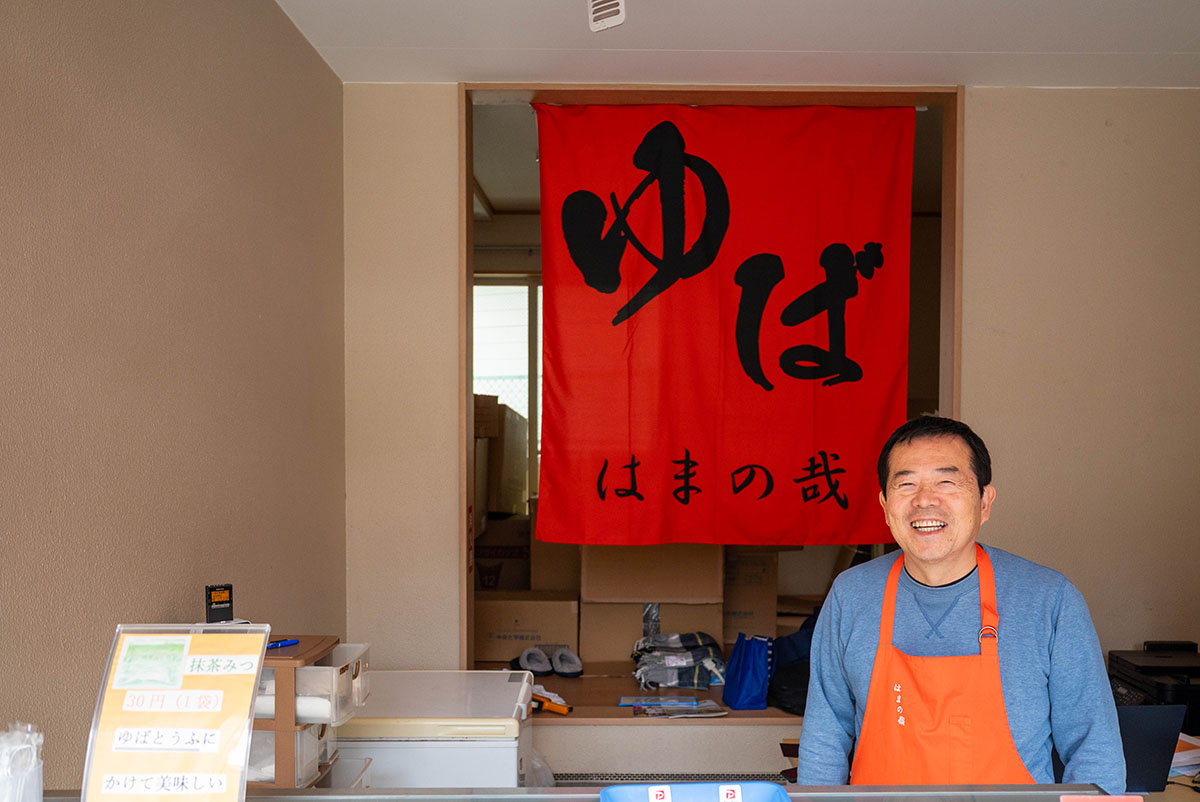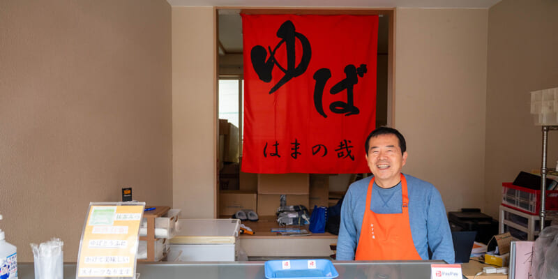 約20年前、浦安駅前で創業した、ゆば専門店「はまの哉(や)」。現在は北栄3丁目の工房で深夜から早朝にかけて手づくりのゆばを製造し、今年4月には北栄2丁目に販売店をオープンしました。創業者の飯島さんは浦安出身で、自然食品の製造に携わる中でゆばづくりに出会い、30年以上にわたり無添加・手づくりにこだわり続けています。使用している大豆は、佐賀県産の「フクユタカ」国産大豆100%を使用し、繊細で上品な味わいは明治記念館やプリンスホテルにも納められ、ゆばの名所・日光の旅館からも依頼があるほど評判に。かつてはホテルや旅館への卸が中心でしたが、コロナ禍をきっかけに地域とのつながりを強め、浦安市内のマルシェなどに参加。街の人々に「身近で食べやすい」と実際に街の方々の感想をもらうことが増え、もっと多くの方々に広めていきたいと新店舗として北栄2丁目にオープンしました。