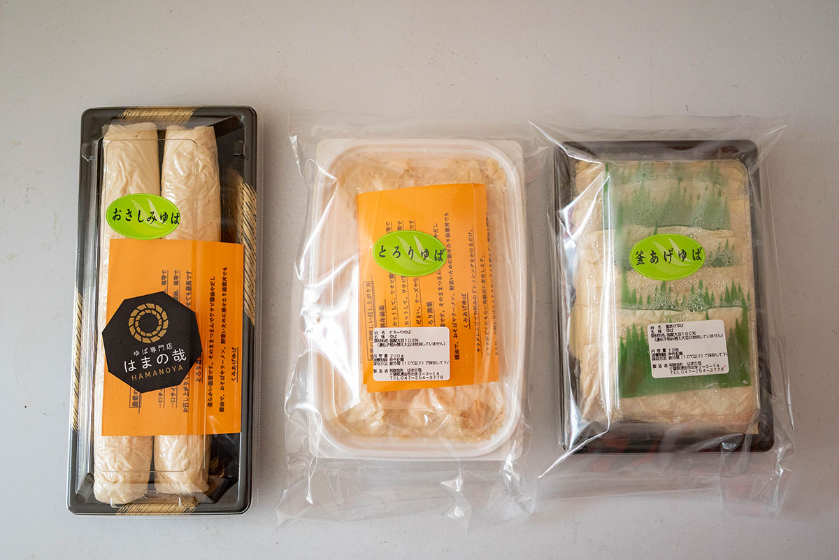 店頭には人気の3種「お刺身ゆば」「とろりゆば」「釜あげゆば」や、安心して楽しめるスイーツが揃い、優しい味わいを日常に届けています。さらにギフトセット(3500円セットは送料無料)はお歳暮や手土産にも好評で、浦安市のふるさと納税の返礼品にも登録されました。「無理せず丁寧に。浦安の方々に長く愛されるゆば屋でありたい」と、はまの哉の飯島さんと羽石さんは話します。身体にも嬉しい栄養があるゆば。丁寧に無添加で作られた優しい味わいのゆばを、いただいてみませんか?