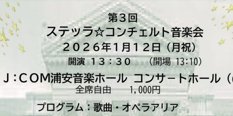 2026年午(うま)年のスタートです。新たな可能性が広がりそうな年の幕開け。本格的なクラシック演奏の美しい調べに浸ってみませんか。1月12日(月・祝)、午後のひとときを彩るのは【ステッラ☆コンチェルト音楽会】。
