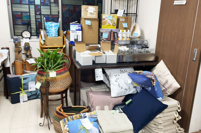 リサイクル販売、また一部無料のものもあるそうです。実際にkokoさんで使用されていた素敵な食器や家具、小物などが並びます。婦人小物なども多数ありそうです。