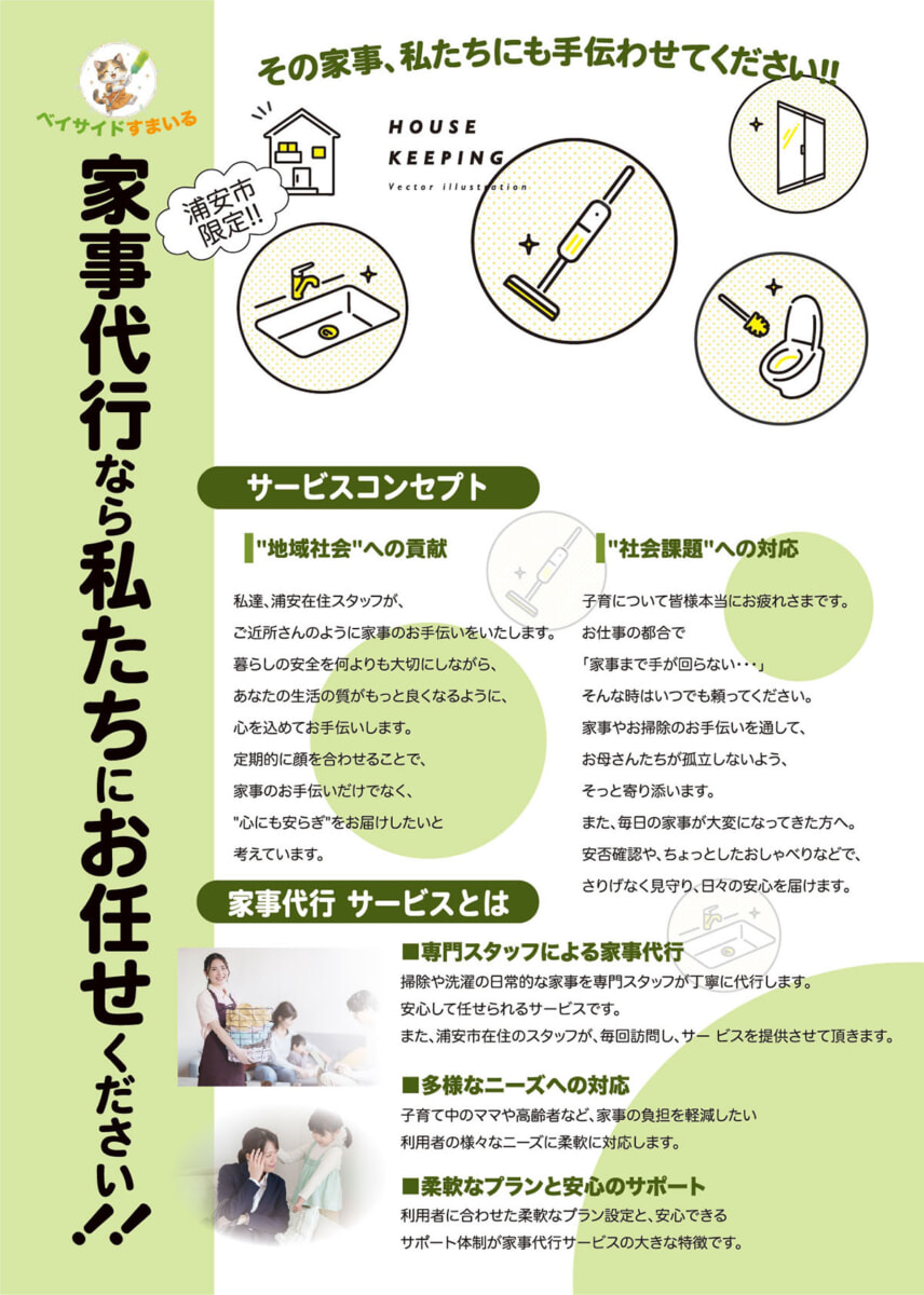 浦安発!身近に寄り添う家事代行サービス始めました!身近な「ご近所さん」として、安心のある暮らしをお手伝い。