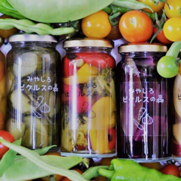 ”農のまち”埼⽟県宮代町で誕⽣した「みやしろピクルスの森」。⾃然のもとで⼦を育てる「みやしろ森のようちえん」の⺟たちが中⼼となって商品づくりに取り組んでいます。環境にも⼈にも優しい商品を⽬指し、野菜・調味料を厳選した⼿作りピクルスです。