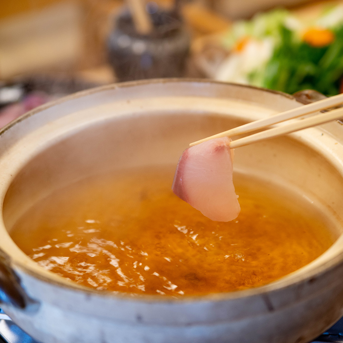 見事な艶をまとい、脂がのっていながらも重さがなく美しい「ぶり」は、寿司に仕立てることを前提に選ばれた上質なものを。これをシンプルなお出汁でいただくその贅沢こそが、ひお㐂の「ぶりしゃぶ」の魅力です。