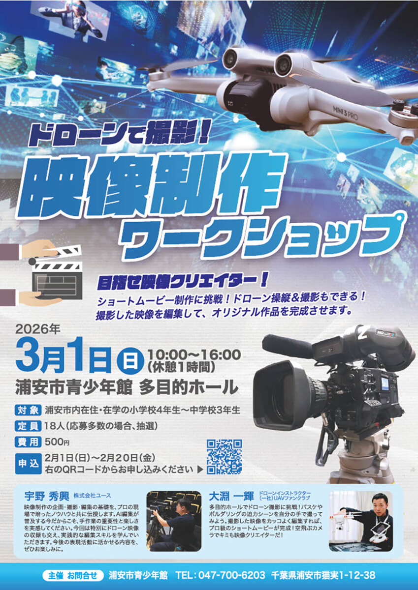 3/1(日)開催|ドローンで撮影!映像制作ワークショップ@浦安青少年館
