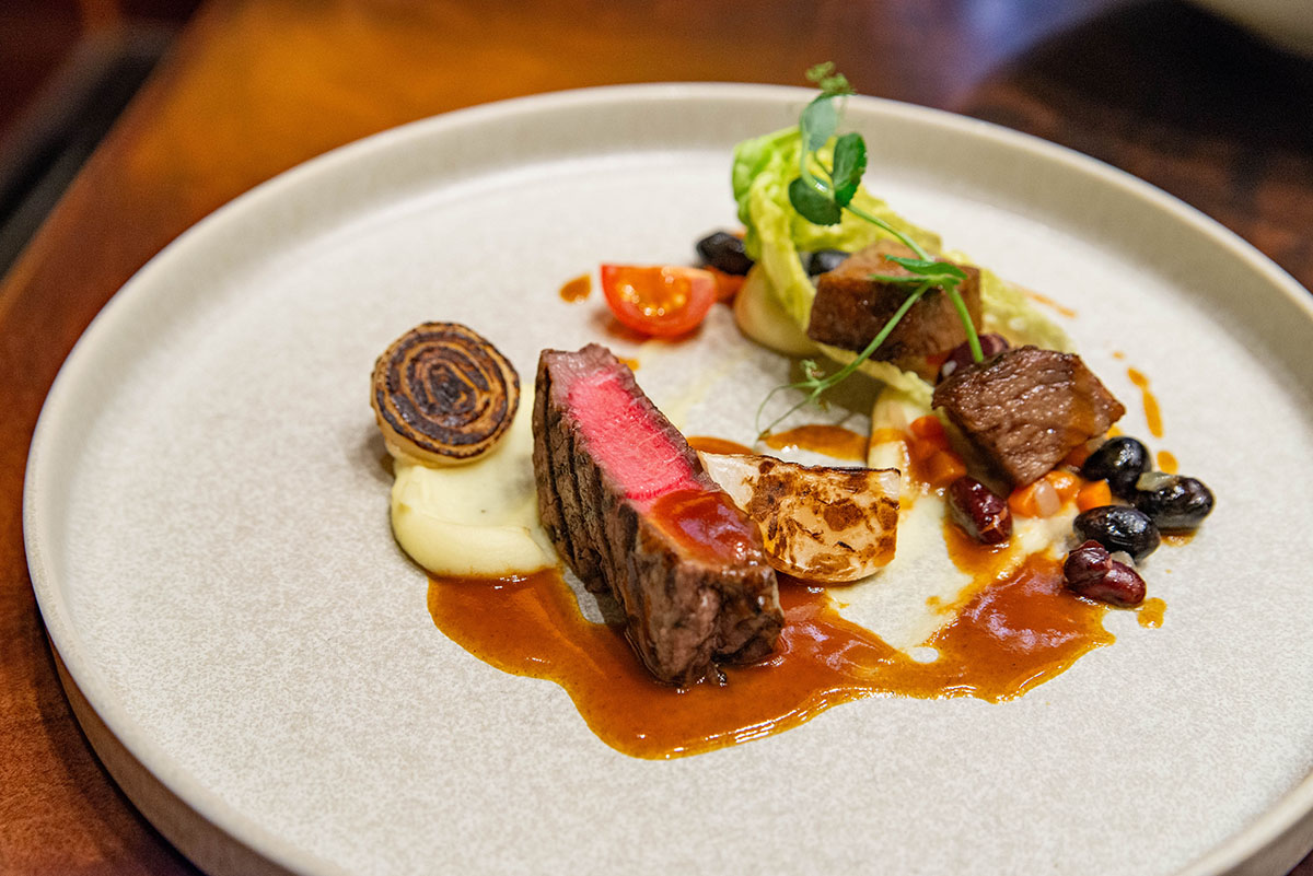 メインには「ビーフテンダーロインのグリル 牛ほほ肉とレッドビーンズのサコタッシュ ポテトピュレとペッパーグレイヴィーソース」など、コーヒー・紅茶を含め計7品の上品なコースでした。