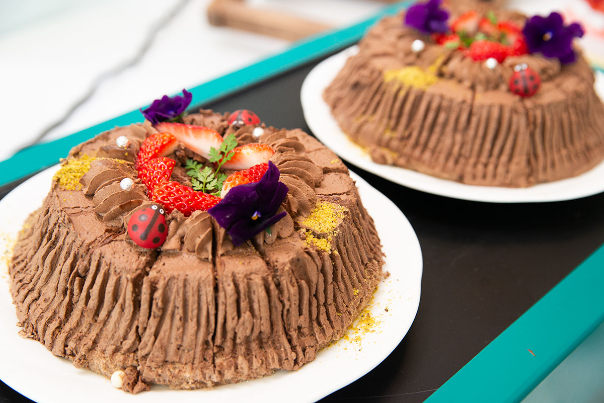 スポンジに北海道練乳の濃厚なミルククリームと苺を挟んだ「いちご練乳みるくショート」。ピンク色のクリームは可愛らしいベリークリーム! ふんわりショートケーキがたまりません。切り株のように見えるよう仕上げた「切り株チョコズコットケーキ」。甘すぎないチョコレートに、くるみやシリアルチョコレートの食感が楽しいチョコレートケーキ。パーティーの準備を手伝うてんとう虫のチョコレートが可愛い♡