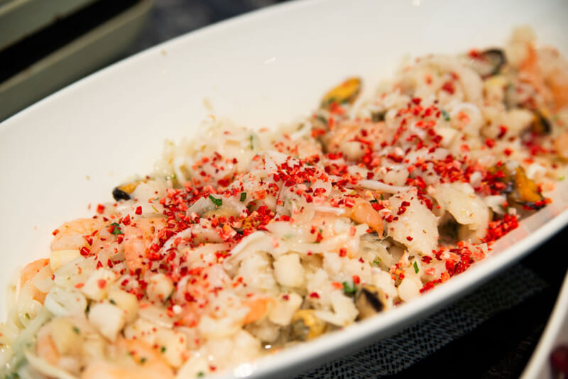 さらにはセイボリーにも春の訪れを感じる約15種類のメニューが並びます。デザートビュッフェに欠かせないセイボリーもこちらでは本格な食事がいただけるのも嬉しい! 見た目も可愛いですが苺の風味に甘酸っぱさと魚介の旨味を感じる「ドライストロベリーとシーフードのセビーチェ」や、箱庭のような見た目の「スモークサーモンとカッテージチーズの箱庭風抹茶ちらし寿司」はとっても美味でしたので、セイボリーはランチとしても、スイーツ合間のお口直しとしても、甘い・しょっぱいを永遠に続けられます。