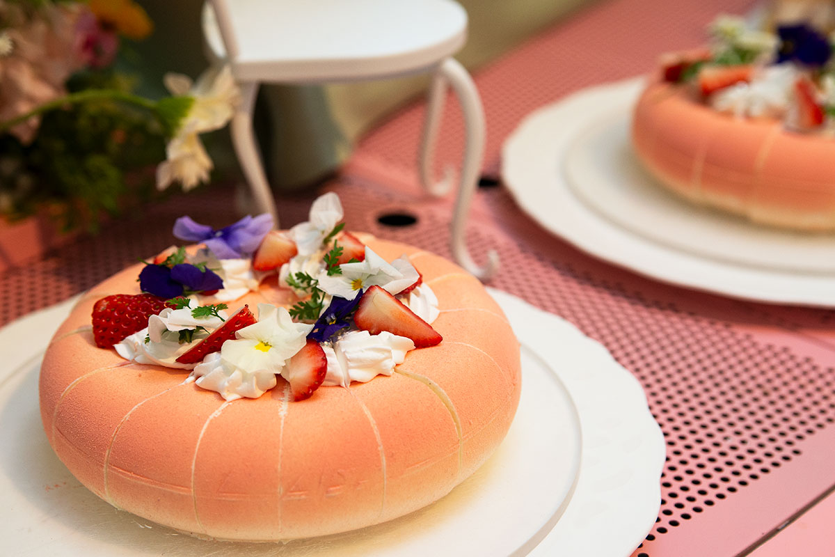 「メロンのフェアリーハウスロール」はメロンの生クリームとメロンカスタードを巻き上げたロールケーキ。淡い色合いで、妖精の家をモチーフにしたファンタジックな世界観! スポンジが軽くてメロンの風味が心地良い味わいでした。また「ハートの湖 チーズとホワイトチョコムース」妖精たちの家の外に広がる小さな湖をハート型で可愛らしく表現。ホワイトチョコレートをクリームチーズで包み込んだ、爽やかな味わいのムースは何個でもいただけちゃう!