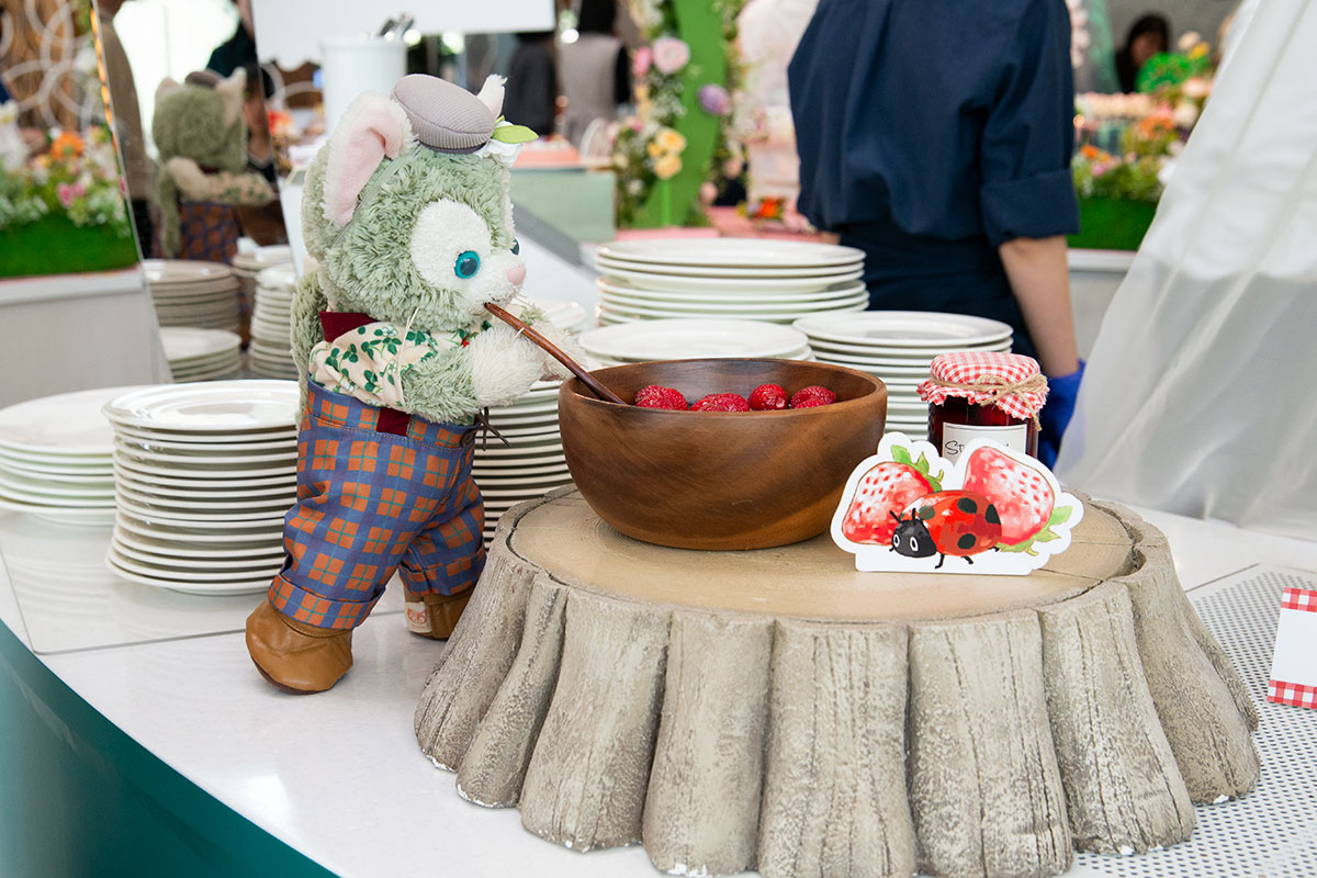 ラウンジ・オーでは、シーズンごとにテーマを変えたスイーツビュッフェを開催。今回のテーマは「水辺の近くに住む苺の妖精たちが開くティーパーティー」。苺をふんだんに使ったスイーツとストーリー性あふれる世界観に入りこんでしまいそうです! ビュッフェ台には緑や色とりどりの花があしらわれ、約35種類のスイーツとセイボリーずらりとなんでいましたよ。