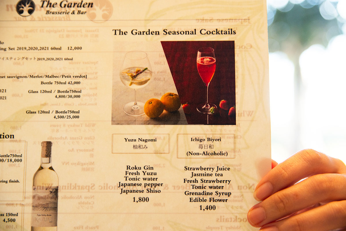 そして、アフタヌーンティに限らず、「ザ ガーデン ブラッスリー&バー」では、季節に合わせたカクテルやノンアルコールカクテルのご用意も。