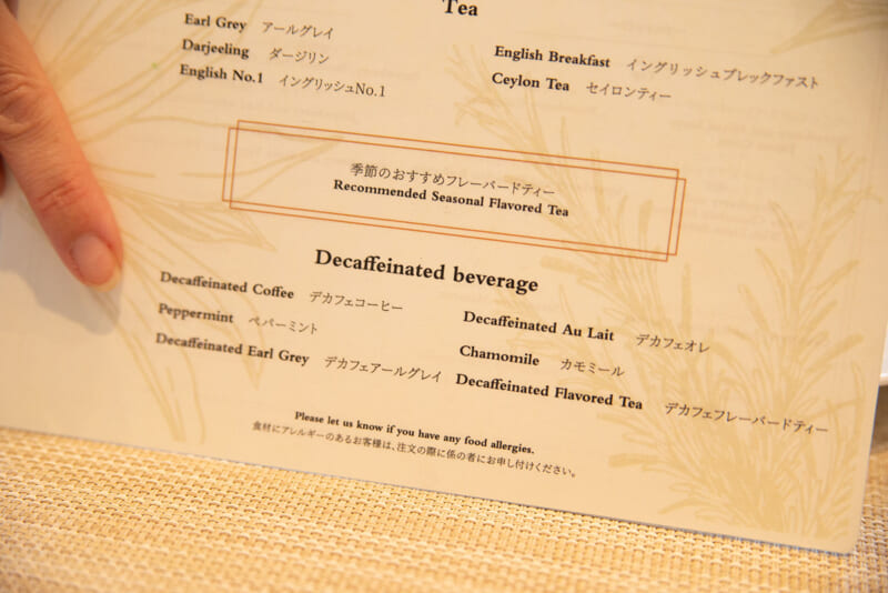 セイボリーもスイーツもどれも一つずつが丁寧に作られており、一口ほどの大きさではありますが、これが結構お腹にたまり、お腹いっぱいにいただきました。そしてどのポーションも紅茶に間違いなく合うものばかり。お時間を気にせずに、紅茶とのマリアージュをに、お話に華が咲くこと間違いありません。午後からはカフェインを控えたい方も、身体にやさしいデカフェインドリンクのラインナップが豊富なので、どんな方も楽しますね。スイーツに合わせて選定したフレーバーティー1種、13種類のコーヒー、6種類の紅茶、6種類のデカフェを含む、計26種のドリンクが用意されています。