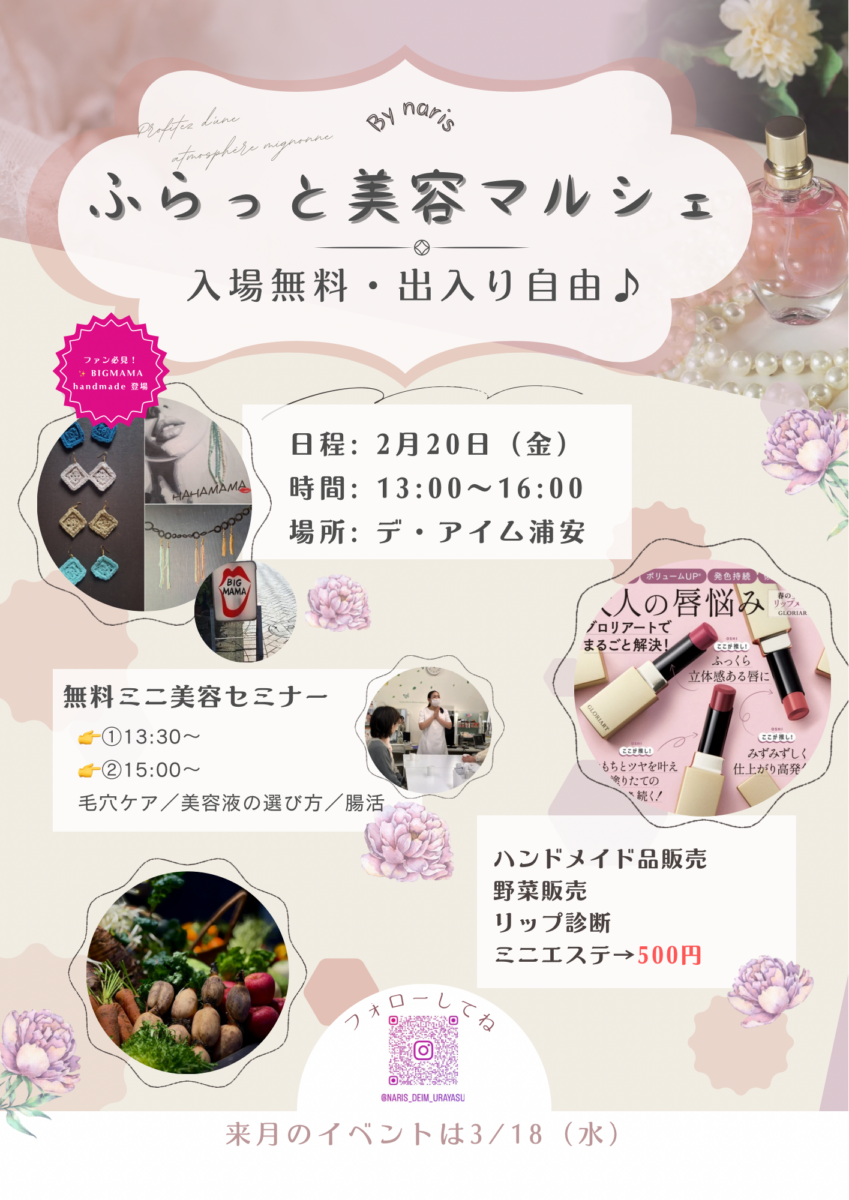2/20(金)開催! \学べてキレイになれる♪/ふらっと美容マルシェ
