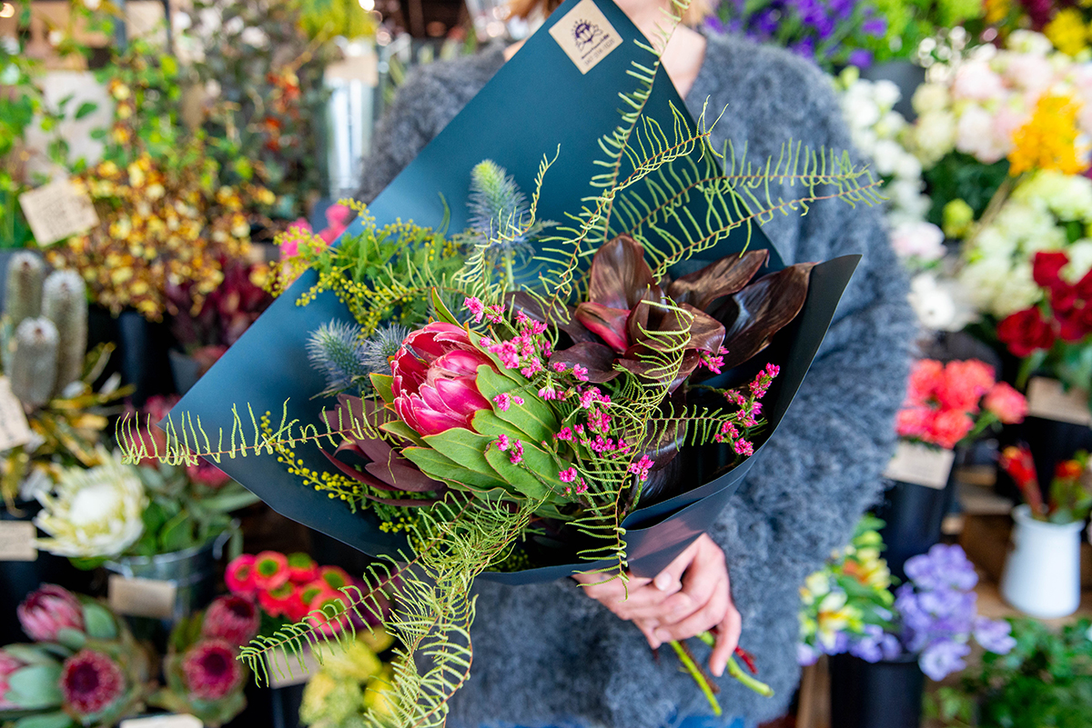 「ネイティブフラワーの魅力は見た目だけでなく、その強さと長持ち具合にもあるんですよ」と山本さん。水に挿したまま”立ち枯れ”し、そのままきれいにドライになる花もあるそう!そして、力強い花言葉も印象的です。「例えば、キングプロテアは『王者の風格』、ピンクッションは『どこでも成功』、バンクシアは『心に鎧を着る』――」過酷な環境で生き抜く力を持つ花だからこそ、こんなポジティブで力強い意味がついたのかもしれません。