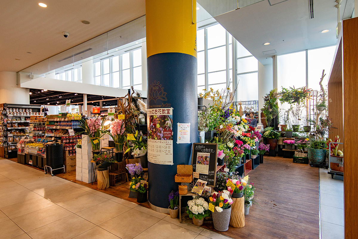 ニューコースト新浦安の海側の入口を入ってすぐ。色も形も見慣れないのに、どこか温かくて力強い――そんな不思議な魅力の花たちが並ぶお店があります。