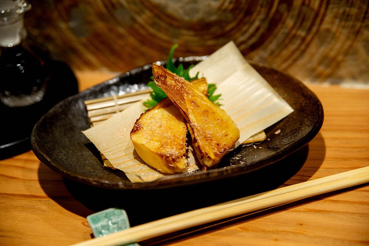 鹿児島県産の早掘りたけのこはシンプルに「早彫り焼きたけのこ(1,000円)」で。