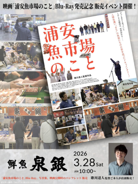 3/28(土)「鮮魚 泉銀」にて映画「浦安魚市場のこと」Blu-rayを発売記念! 販売記念イベントに、歌川監督も来ます!