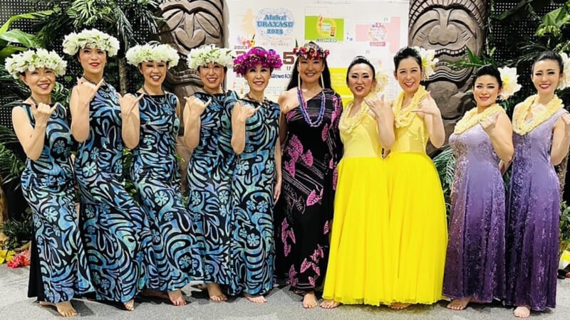 今回、春のやわらかな陽気の中でフラを披露してくれるのは、5日に出演する「イヒラニ・フラ・スタジオ」の皆さんと、19日に出演する「Hula Hui Ohana Polynesian Dance Studio」の皆さん。